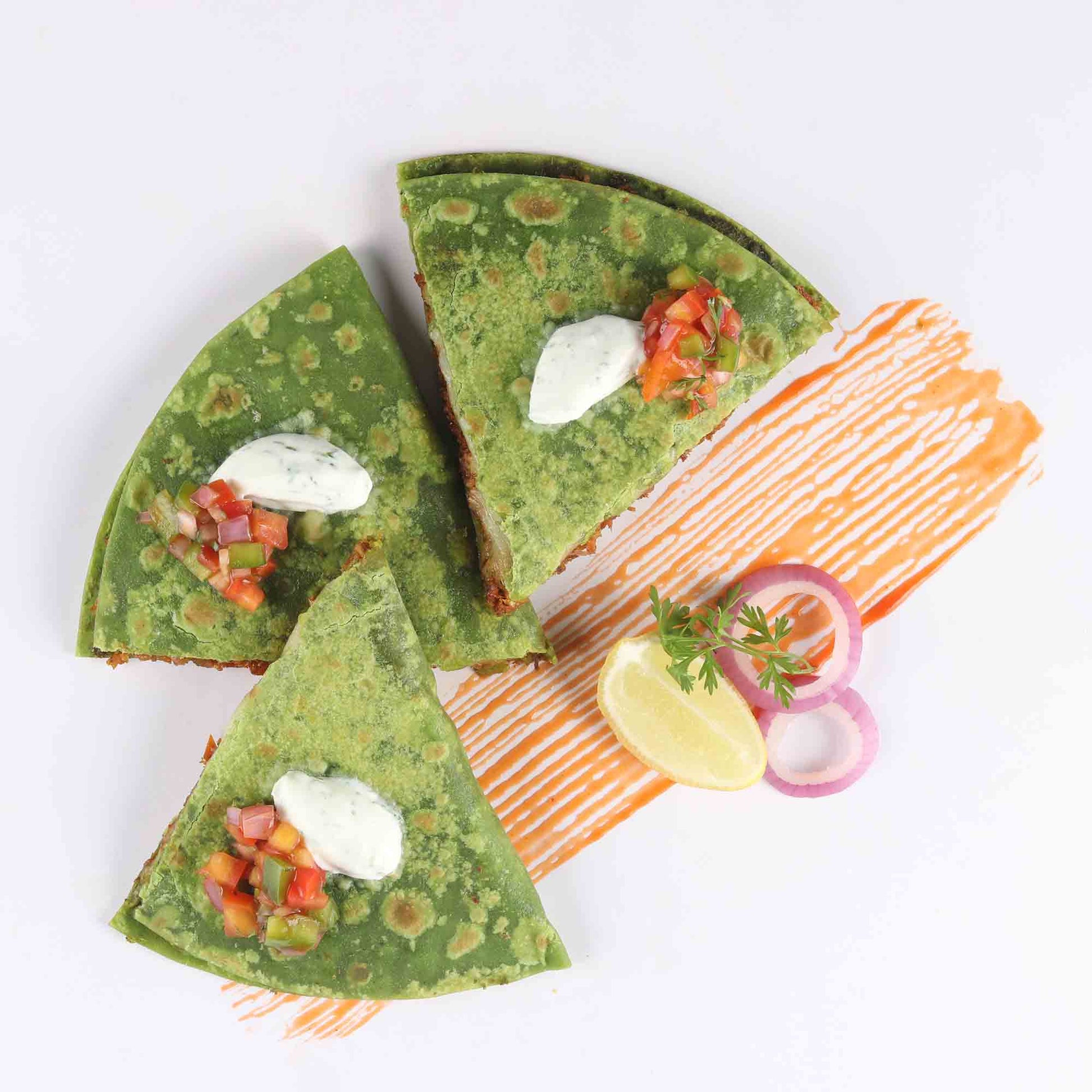 It's green, it's mean and you won't mind turning on the heat on this one, our fully loaded Quesadilla true to its roots is a handmade delicacy that is the most comforting appetizer you'll take a bite of, savour every bite while debating if palak paneer is really your favourite spinach dish anymore.